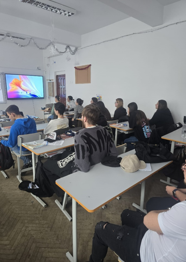 În data de 16.12.2025, în intervalul 10.00-12.00, psiholog Daniela ANTON în cadrul Centrului de Consiliere și Orientare în Carieră, Universitatea „Vasile Alecsandri” din Bacău a dat curs invitației doamnei profesor Lăcrămioara CONSTANTIN de la Colegiul „Mihai Eminescu” din Bacău, alături de elevi de la clasele a XII-a și a XI-a, pentru dezbaterea tematicii asociate emoțiilor și autoreglării emoționale, în cadrul săptămânii „Școala Altfel” în contextul în care stategiile de autoreglare emoțională pot fi resurse active inclusiv în abordarea fenomenului de bullying.