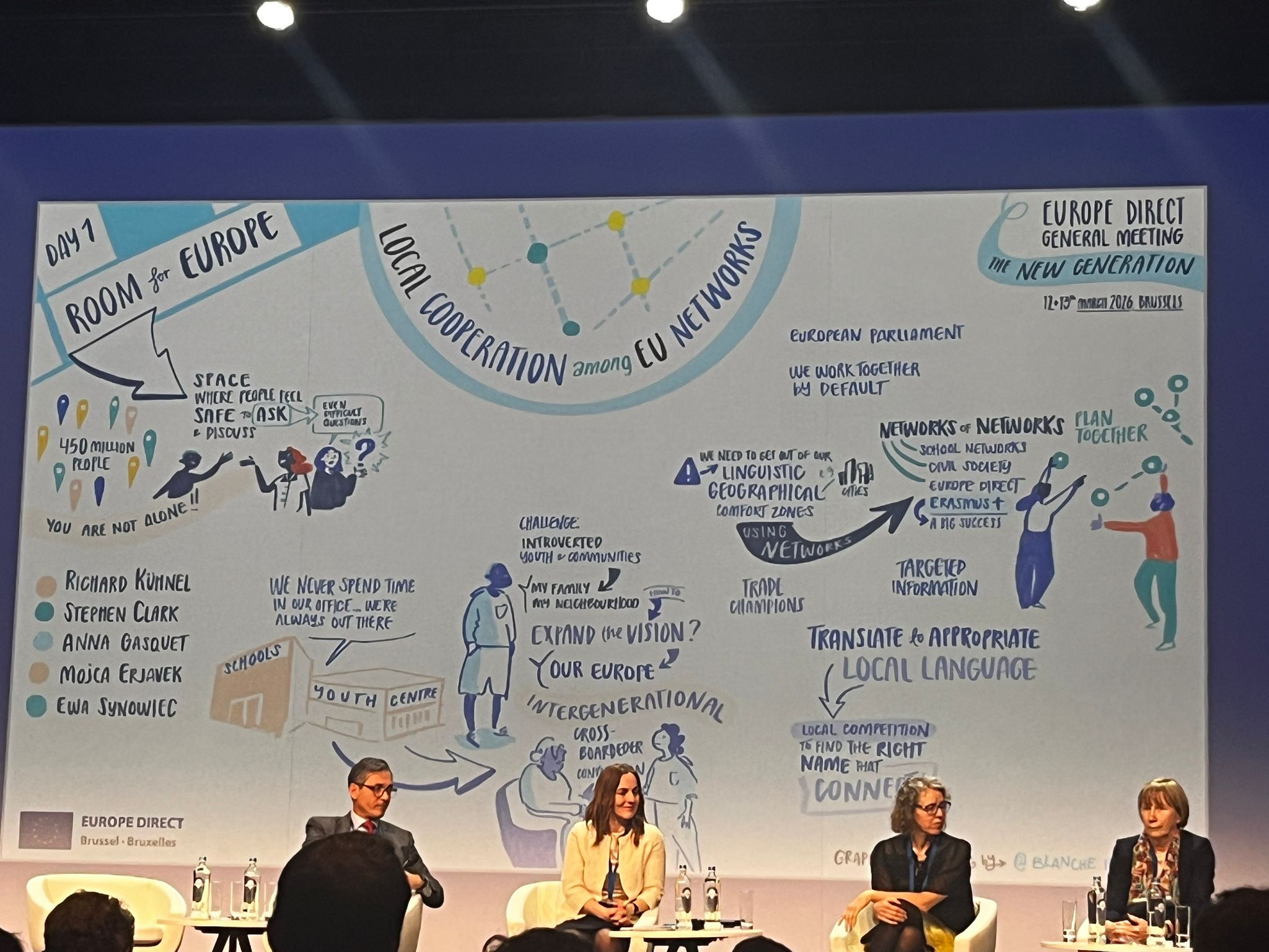 Programul a inclus, de asemenea, ateliere și discuții cu oficiali ai Comisiei Europene și ai Parlamentului European. Reuniunea marchează lansarea noii generații EUROPE DIRECT, rețeaua de informare locală a Comisiei Europene, oferind cetățenilor și întreprinderilor informații gratuite despre UE și despre modul în care politicile europene ne influențează viața de zi cu zi. În anii următori, rețeaua va pune un accent și mai puternic pe democrație și valorile ei. Centrele EUROPE DIRECT vor funcționa din ce în ce mai mult pe post de gazde locale pentru discuții despre Europa, creând spații în care oamenii să se poată întâlni, dezbate și discuta despre probleme europene. Prin formate participative și dialog direct, centrele vor aduce cetățenii la discuții și le vor consolida implicarea în viața democratică. Pentru perioada 2026-2030, un număr de 315 centre au fost reînnoite, iar altele 85 noi centre s-au alăturat rețelei din UE.